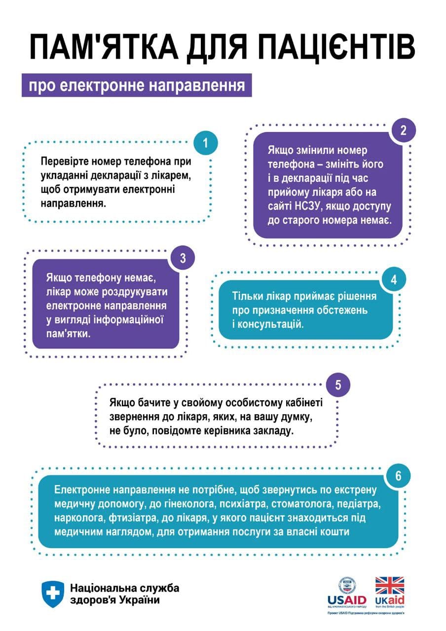 Консультації спеціалістів амбулаторно-діагностичного відділення здійснюються за наявності електронного направлення від сімейного лікаря або фтизіатра ЦПМСД , із наявними результатами попередніх аналізів або за самозверненням